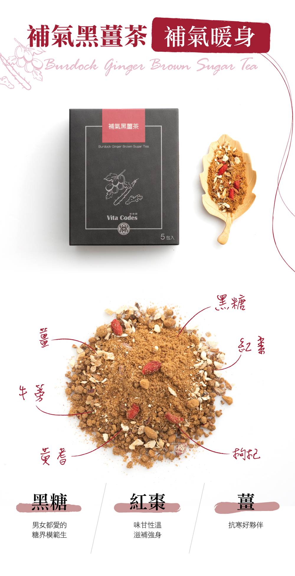 - 補氣黑薑茶-主成份為黑糖、紅棗、薑。甘甜順口,伴妳一起補氣暖身!