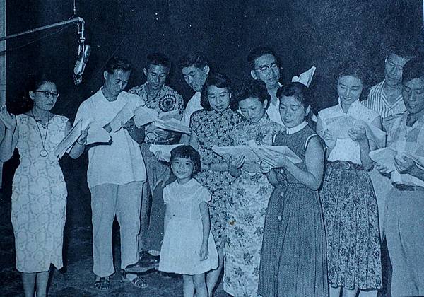 [圖說3說那個年代-崔小萍(左一)與廣播劇團演員演出廣播劇。]
